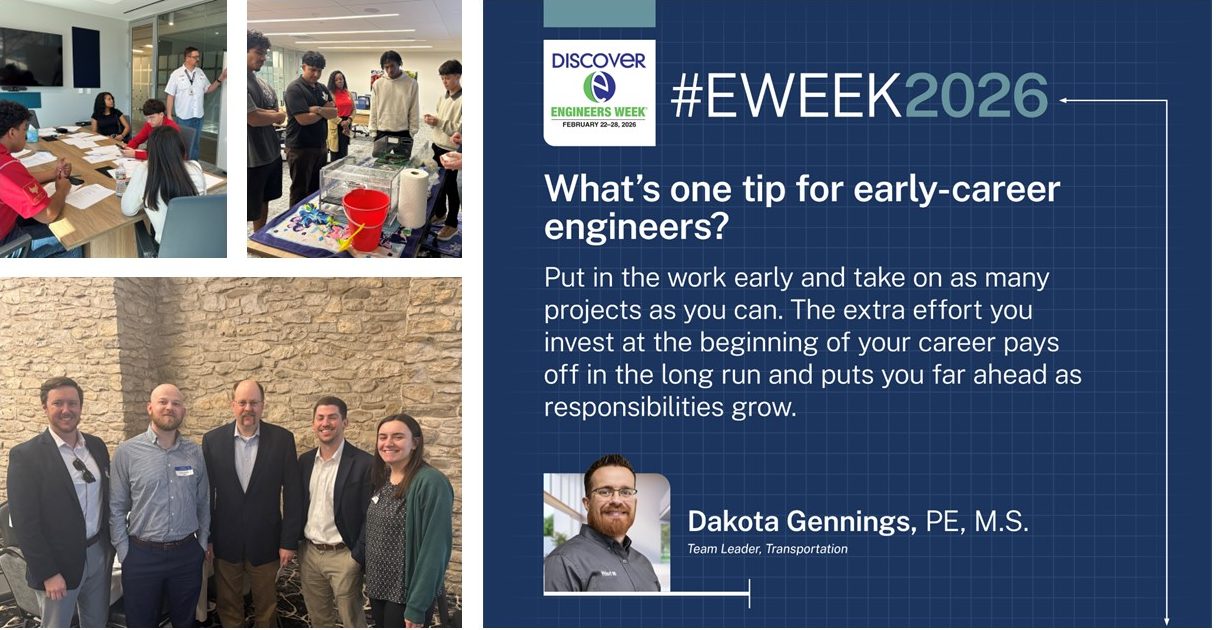 Halff celebrated Engineers Week by sharing insights from engineers across the firm and engaging with students exploring careers in STEM. Throughout the week, Halff engineers answered questions and shared advice for early-career professionals, highlighting how hands-on experience, mentorship and understanding the bigger picture can help engineers grow quickly in their careers. Professional engineers from Halff shared early career advice and more during Engineers Week